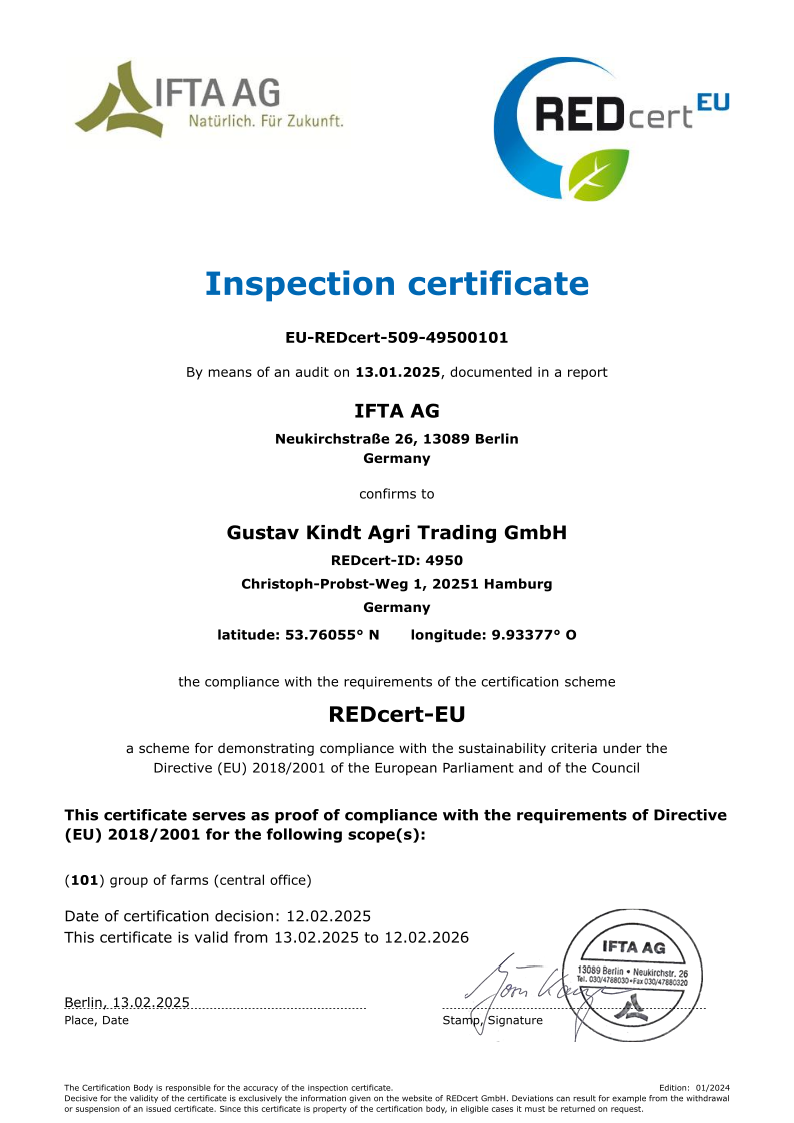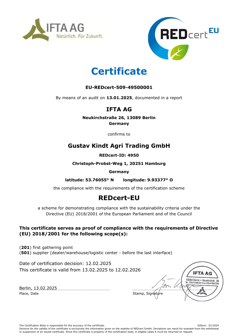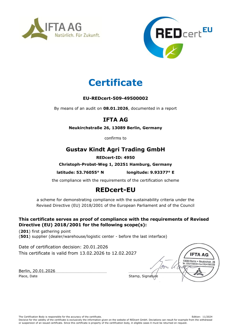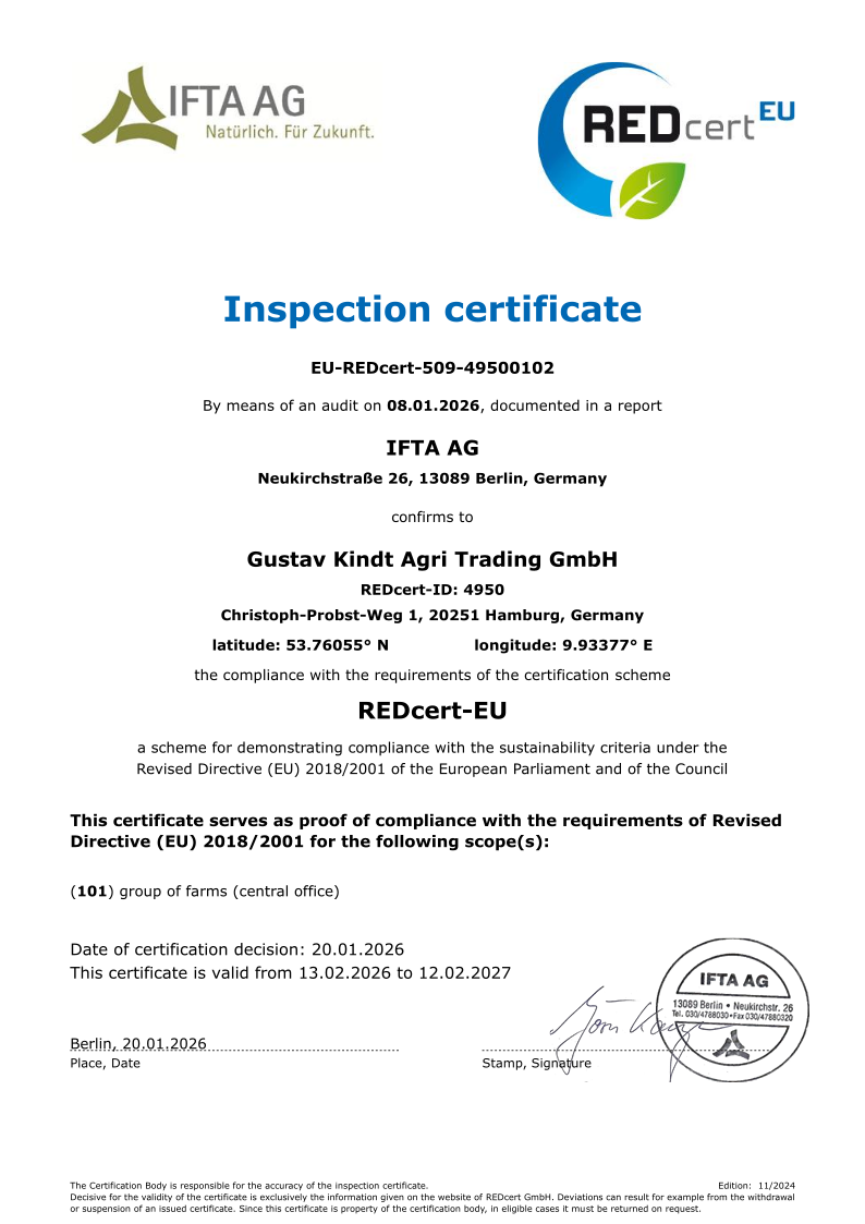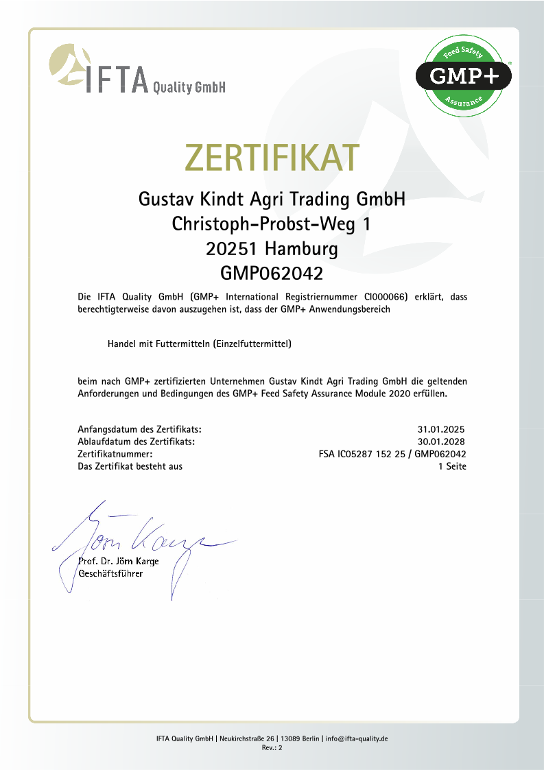 Die Gustav Kindt Agri Trading GmbH, ein mittelständisches Unternehmen mit Hauptsitz in Hamburg, ist ein dynamisches und modernes Handelsunternehmen für Getreide und Futtermittel. Seit mehr als zwei Jahrzehnten werden unsere Aktivitäten durch ein professionelles Team von Mitarbeitern gesteuert und optimiert, so dass unseren Geschäftspartnern stets die gleiche hohe Qualität, Effizienz und Transparenz entlang der Lieferkette garantiert werden kann. Die Gustav Kindt Agri Trading GmbH konzentriert sich auf die Erfassung von Agrarrohstoffen auf Erzeugerebene, die Vermarktung an regionale und überregionale Verbraucher sowie auf die leistungs- und kundenorientierte Vertragsabwicklung. Grundlage dafür sind einfache Strukturen, schnelle Informations- und Kommunikationswege und ein Netz von Geschäftsstellen, das sich über Polen, Tschechien, die Slowakische Republik und Ungarn erstreckt.